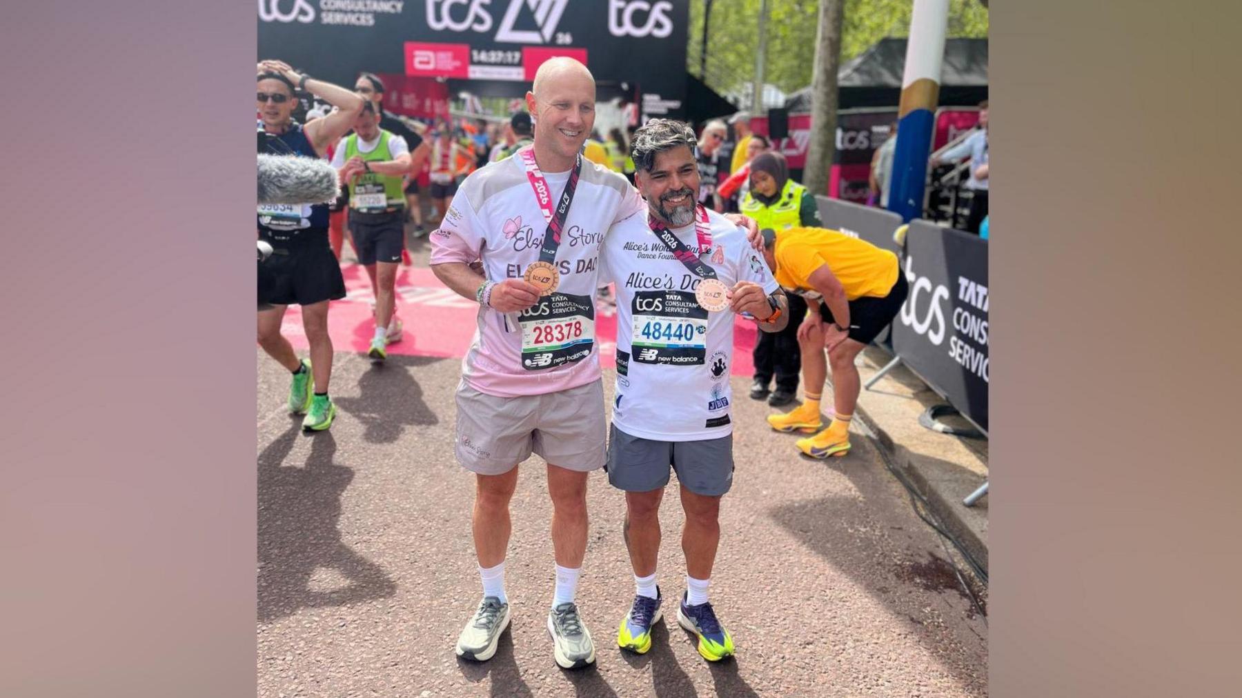 David Stancombe and Sergio Aguiar finished the 2026 London Marathon in four hours and 36 minutes The fathers of two girl…
